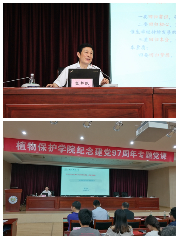 7月4日下午,云顶国际于金陵研究院三楼报告厅举办庆祝建党97周年师德师风教育专题党课,公司党委副书记、纪委书记盛邦跃受邀主讲。公司党委书记吴益东主持,全体教职工及研究生党员参加学习。