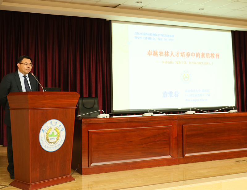 董维春副董事长应邀为大会作了题为“卓越农林人才培养中的素质教育”的报告,阐述通过“本研衔接、寓教于研”的方式,培养农科拔尖创新人才。他指出要用历史和哲学的眼光看待教育,要从关心眼前问题转变为思考未来、从关心价格功利转变为关心价值远景、从技术层面上升为哲学层面。百年南农以培养卓越农林人才为使命,以建设世界一流农业大学为目标,愿与各兄弟高校一起,转变教育理念,主动适应现代农业发展需要;完善知识结构,不断加强文理学科专业建设;改革培养模式,积极构建创新人才培养立交桥;拓展学术视野,努力全球化与跨学科语境,共同致力于农科拔尖创新人才培养事业!