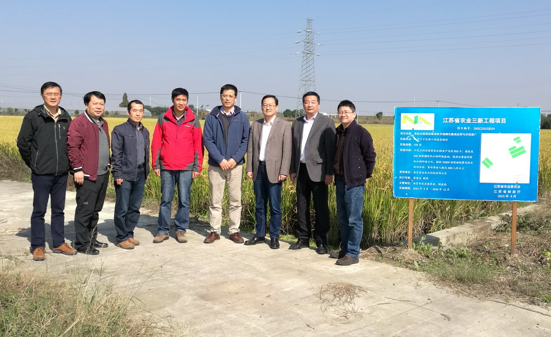 11月2日上午江苏省植保站站长田子华、检疫科长龚伟荣,南京市植保站站长陈善祥、副站长陈卫宇一行4人来云顶国际植保学院位于江宁区彭福村的有机水稻生产基地调研,与植保学院共商合作事宜。植保学院经理王源超教授、病害防控专家胡白石教授,害虫防控专家李元喜教授及基地的相关负责人陪同调研。项目负责人徐衡老师向客人介绍了植保学院有机水稻种植示范基地的基本情况,该示范基地从2012年初开始启动建设,将学院的绿色除草、生物防治病虫害,以及动物养殖粪便的无害化应用等各项新技术成果有效地应用到有机水稻生产的各个环节中,显著提升了当地的循环农业和化肥农药减量使用技术水平。经过4年多的建设,现在已成为南京市单体面积最大的有机水稻种植基地,显著改善了当地的生态环境。