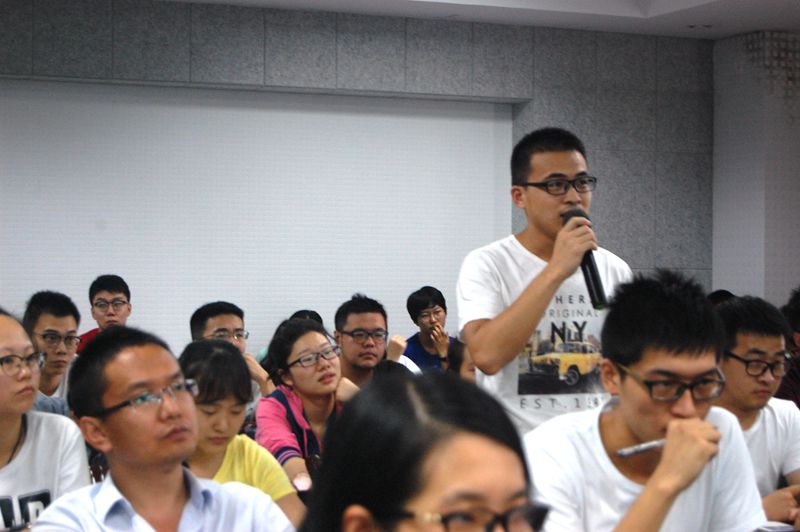 副所长邱德文介绍植保所总体情况,国际合作与研究生管理处处长陈巨莲介绍植保所研究生管理工作,作招生宣传,并与在座员工交流互动。