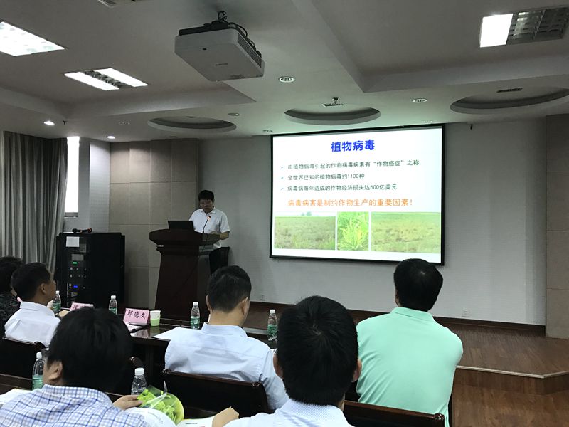 植保所所长周雪平作“植物与病毒的分子军备竞赛”主题报告,围绕研究所正在研究的双生病毒进行以下汇报:双生病毒的严重危害及特点;B型烟粉虱的感染能力与防治情况;媒介昆虫——病毒互惠关系机制;植物与病毒的分子军备竞赛以及植物如何应对邪恶的βC1。周雪平以自己多年的心得体会告诉同学们:不管你的起点有多低,只要你努力不放弃,终会有一番作为。