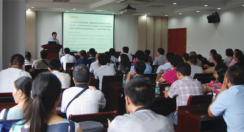 接下来,由植保公司党委副书记黄绍华老师从学习,生活,发展角度来介绍如何适应老员工活。大学是培养一种兴趣,读一本书,逛一座城。他强调在大学更要学会感恩,懂得团结合作。他最后提醒在座的家长们要做到“学会独处,空巢不空心。有效沟通,放手不放眼”。