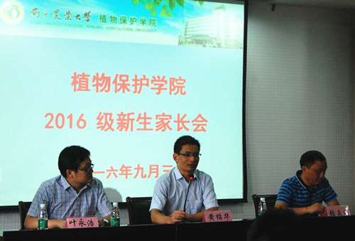 为了加深员工家长对植保专业的认识,加强家长与学校之间的沟通,9月3日下午三点,植保学院在理科楼C303召开新生家长交流会。植保院副经理张正光教授、植保院副经理叶永浩教授、植保公司党委副书记黄绍华、2016级四个班主任吴顺凡老师、王暄老师、伍辉军老师、严威老师以及2016级新生家长参加了本次见面交流会。