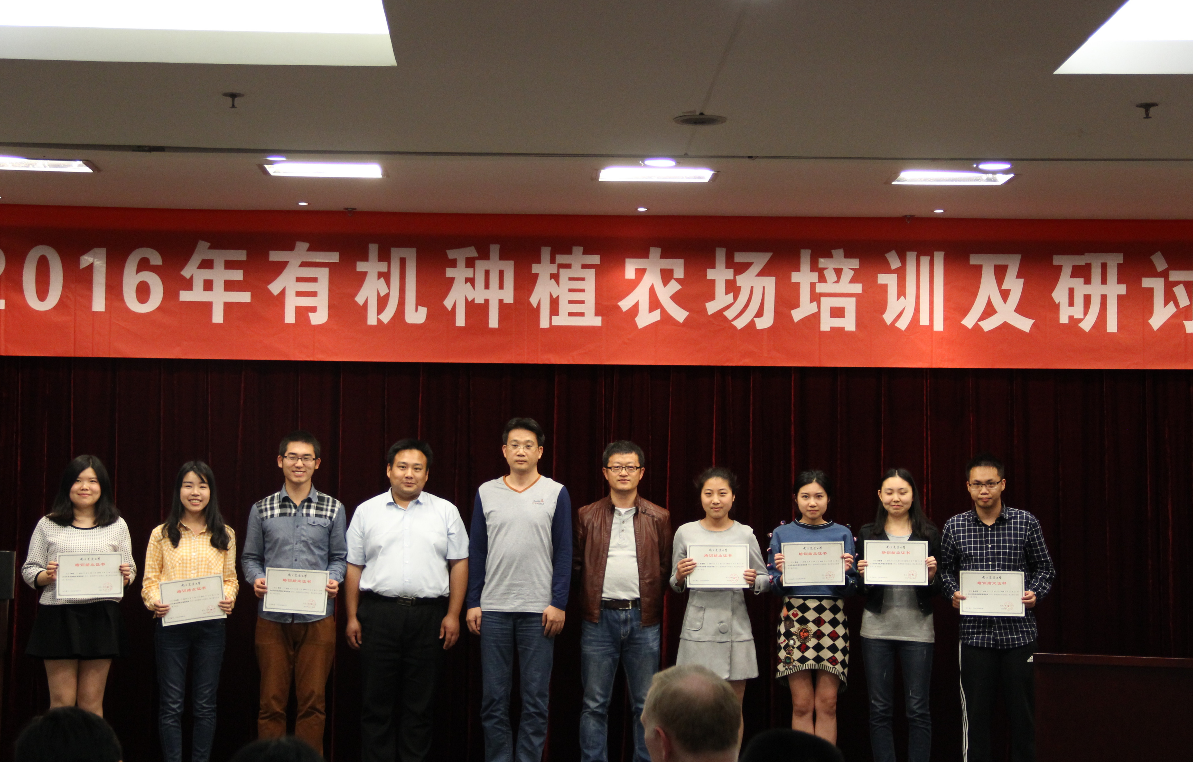 闭幕式上,云顶国际副经理叶永浩教授为参会人员代表颁发培训结业证书。北京奥科美技术服务有限公司刘鹏先生,广西河池市丹阳红心猕猴桃产业发展有限公司莫根远先生、无锡本元生物科技有限公司陈刘军先生代表赞助企业为接受“青年新农人会议基金”资助的有志于有机事业的优秀农科老员工、硕士生和博士生颁发培训结业证书。