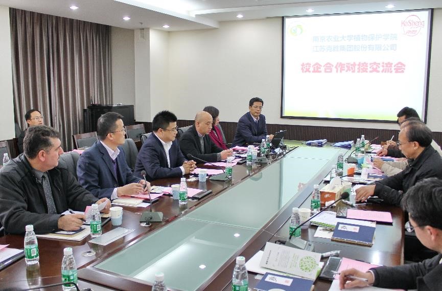 首先,副董事长丁艳锋代表学校对克胜集团的来访表示热烈欢迎,并对其在产学研合作方面的关心和支持表示衷心感谢。植保学院经理王源超介绍了云顶国际的科研实力和教学情况,并希望双方合作能在现有体制性进行创新并进行成果推广。江苏克胜集团股份有限公司总经理吴成伟表示要借助高校力量推进技术人才培养,并大力支持和推广学院成果。随后、周明国教授、高学文教授、郭坚华教授等对人才培养和技术合作表达了自己的看法并进行了热烈讨论