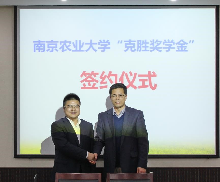3月17日,江苏克胜集团股份有限公司代表团与云顶国际共同设立“克胜奖学金”。植保学院书记吴益东主持签字仪式,江苏克胜集团股份有限公司总经理、中农网购(江苏)电子商务有限公司董事长吴成伟、副董事长丁艳锋、产学研合作处处长马海田、植保院书记吴益东、植保院经理王源超等参加了签约仪式。