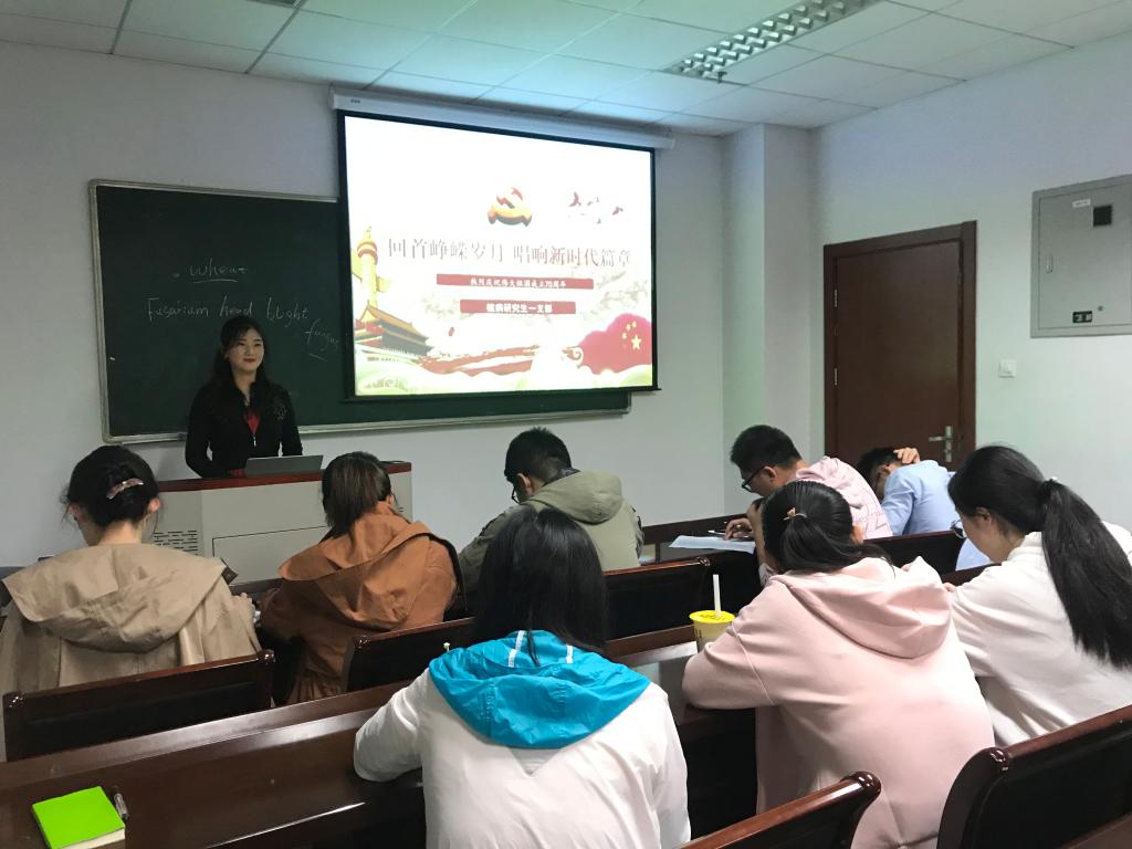 新中国成立70周年之际,公司植物病理学系研究生第一党支部召开“回首峥嵘岁月,唱响新时代篇章”专题学习活动。支部书记王燕老师担任主持人,党小组组长任元同志汇报学习内容,全体成员共同参与。